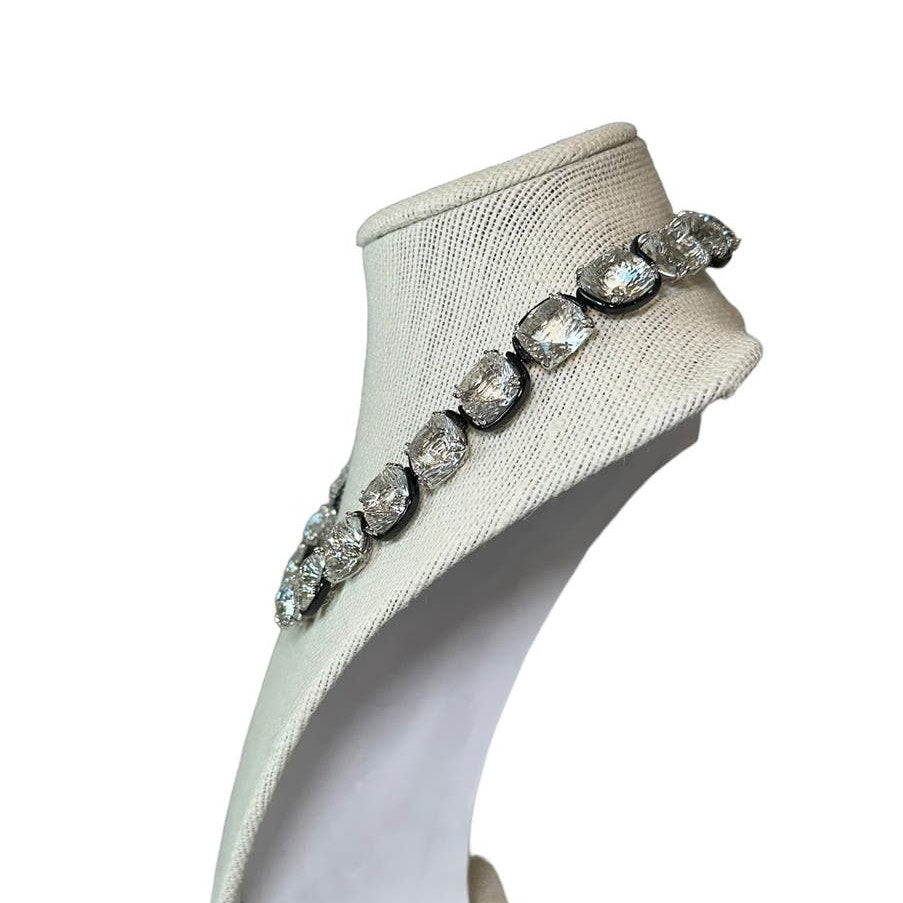 Designed to give the illusion of floating stones, this all-around choker necklace will make an iconic addition to your jewelry collection. Showcasing classic cushion cut crystals in a modern setting, this versatile piece can be styled for day or night, solo or stacked, to bring a sense of mystery to any look. This necklace is part of the Harmonia family, designed by Creative Director Giovanna Engelbert for Collection I.