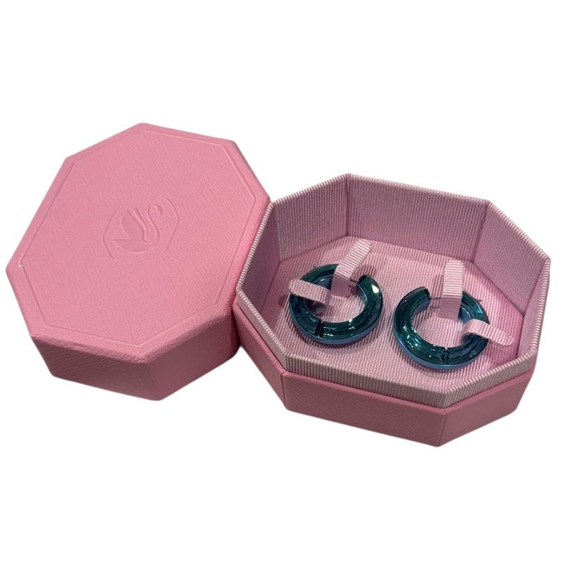 Swarovski Women's Hoop Earrings Lucent Blue Aluminum and Crystals